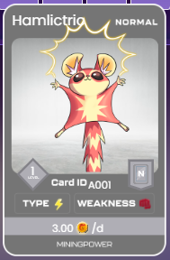 일일 채굴량 4.5입니다. 슬롯에 카드를 놓으면 바로 채굴