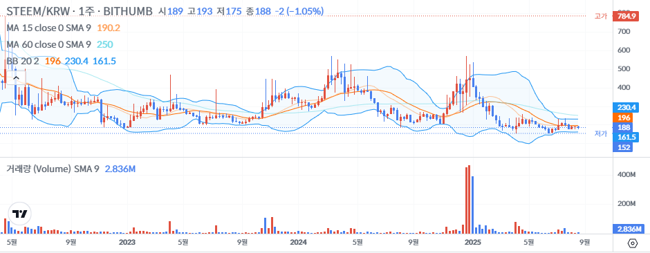스팀잇 포스팅 보상으로 얻는 스팀 코인도 마찬가지. 빗썸차트 기준으로