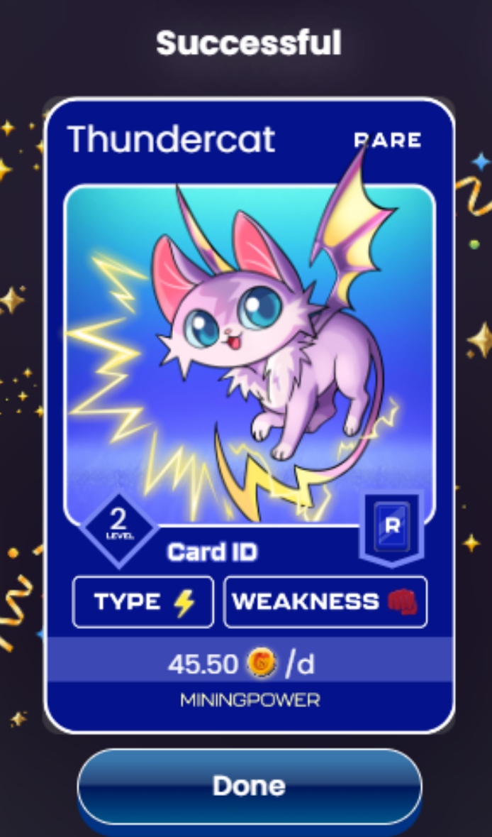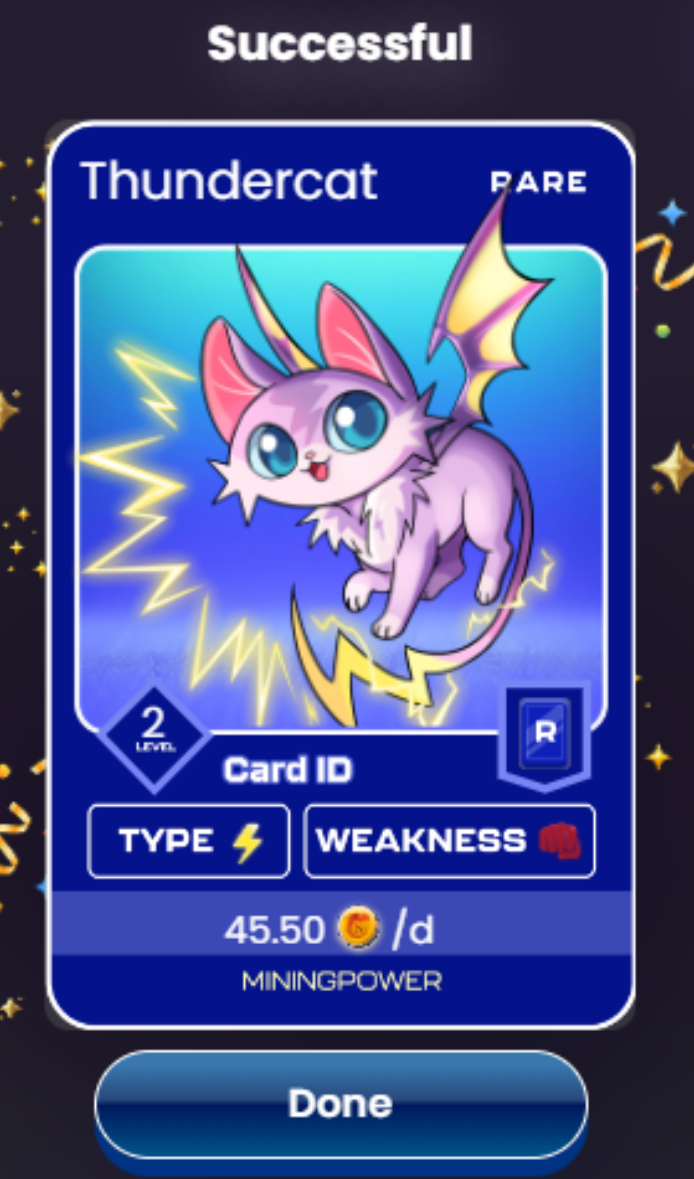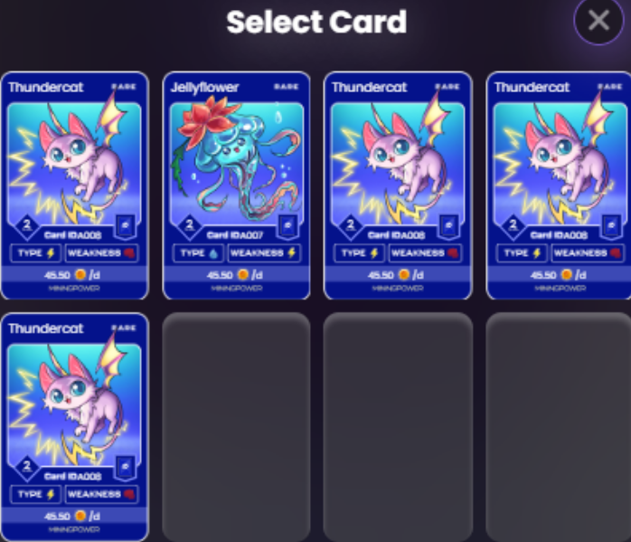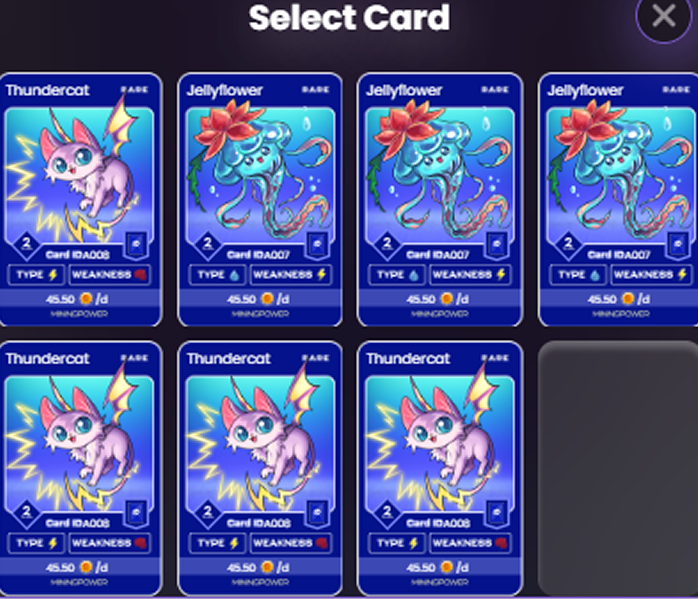 레벨 2의 레어 카드가 7개 모였습니다. 이렇게