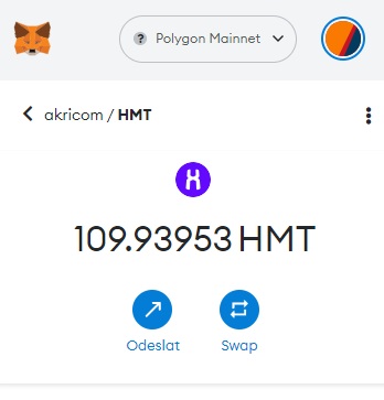In the Metamask wallet, you must manually add the Polygon network as well as the HMT token.