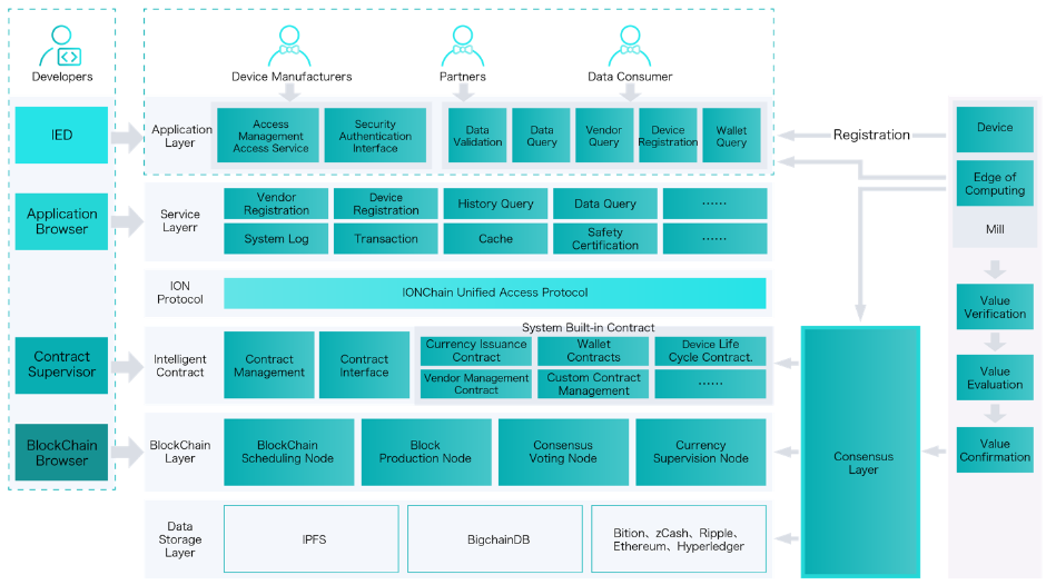 Once the separation has been made, the value creation layer is solely responsible for creating the value. Each type of IoT device will have a specifically designed algorithm. Like the ions after ionization, the value created by different IoT devices in the IONChain network can be combined into new types of consensus algorithms that will "translate" the value generated in different scenarios into the unified standard expressed in IONC currencies.