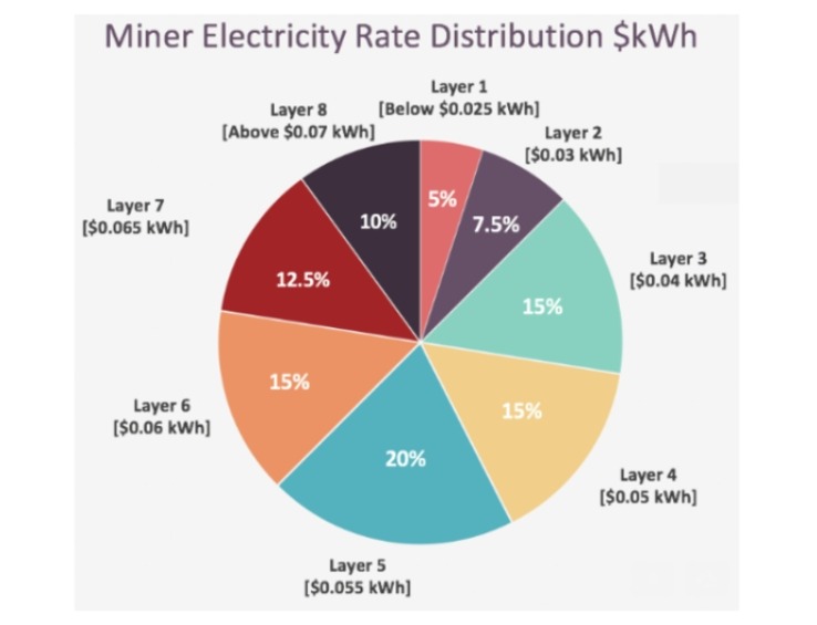 레이어 1에 가까울수록 더 값싼 전기료로 비트코인을 채굴합니다. 레이어 5 채굴자가 20%를 차지해 가장 많은 것으로 나타났습니다.