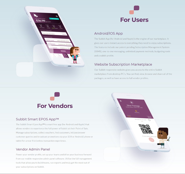 Like any other platforms, Subbit also has features like a built-in code scanner, account management, and a voucher system. In addition, it will have a feature where you can choose subscriptions in the marketplace, talk directly to vendors through the messaging system, and cryptocurrency support. The application is also a two-way platform that benefits both users and vendors.