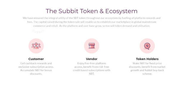 Subbit can be used in two major ways, first is connecting payment methods through the platform for recurring payments. No need to worry about due dates and missed payments that accrue interest and fees. Second is its capability as a digital wallet. A user can deposit fiat money, bitcoin, SBT or other cryptocurrencies. The customer can get rewards and get discounts from subscriptions by using SBT. Vendors will also receive rewards and bonuses when he chooses to receive SBT. Whether you are a customer or vendor if you are a token holder you receive a stake in Subbit, you will also be benefited in the market growth.