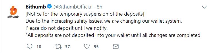 Bithumb said that the company will cover all losses so that users will not be affected, other than by the temporary inability to move their assets. Deposits and withdrawals were suspended as of the time of writing at 1:58 UTC.