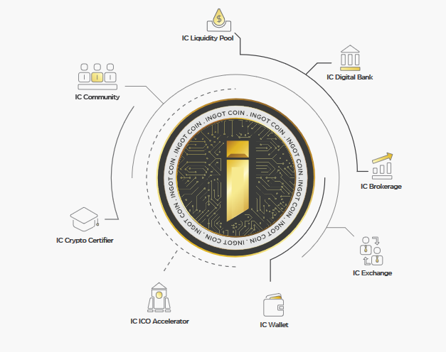 INGOT Coin adalah Wallet berbasis blockchain terintegrasi pertama dengan Bank Digital, Brokerage, Exchange, Certifier, dan Initial Coin Offering (ICO) Accelerator; semua digulirkan ke dalam ekosistem holistik yang memberi penghargaan kepada pemegang token dan peserta pasar cryptocurrency untuk menggunakannya dan berkontribusi untuk itu, selain memberi mereka kesempatan untuk berinvestasi dalam berbagai daftar mata uang, mata uang fiat, saham, serta keuangan lainnya. aset dan instrumen. INGOT coin adalah cryptocurrency terdesentralisasi yang memberikan manfaat dan diskon dalam ekosistem itu sendiri. IC akan didasarkan pada teknologi ERC20."