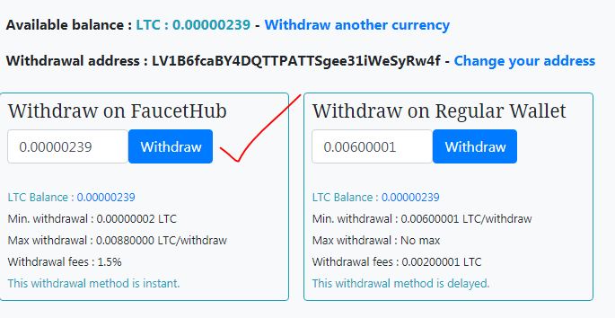 Click on the link at the top of a red checked.See above 1.5% cut in fees Instant rest FaucetHub account will be credited.