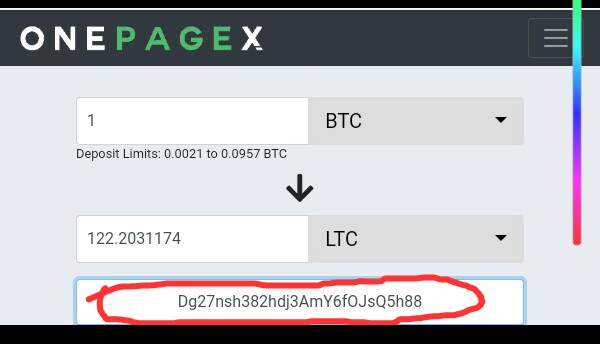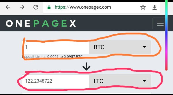 In order to use the OnePageX, one has to first of all visit the exchange site. At the very top one would see an image as shown below. Hence OnepageX only supports exchange from bitcoin into other altcoins now. You can simply just enter the amount of bitcoin you want to exchange into an altcoin.