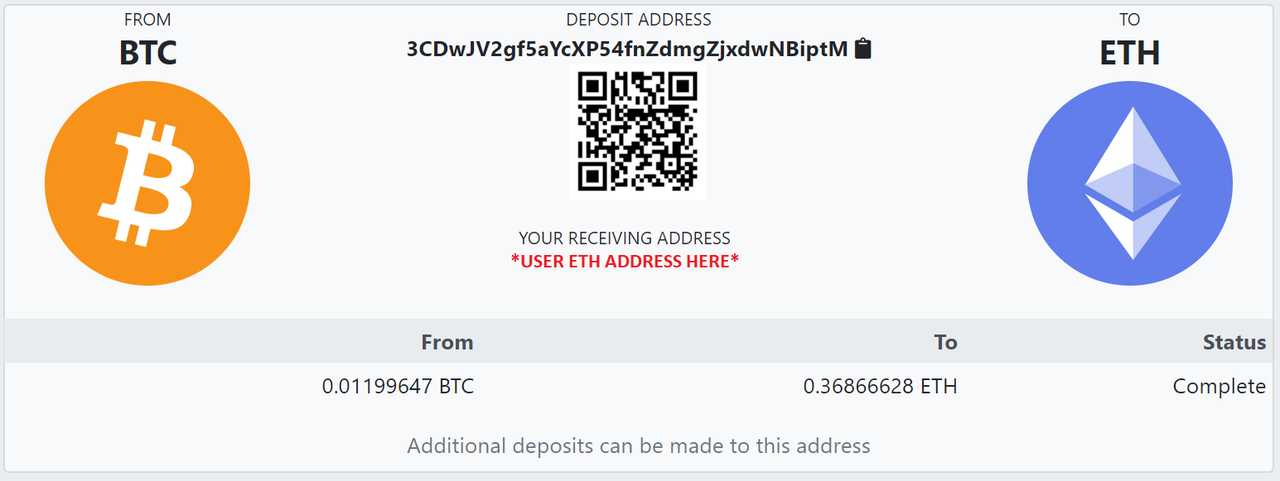 After chosing the altcoin one wants to exchange bitcoin into. The next step is to enter the address of the wallet of the altcoin where one wants it to be deposited. However, one should be careful to input the wallet address correctly.