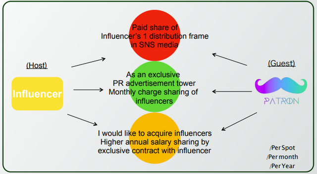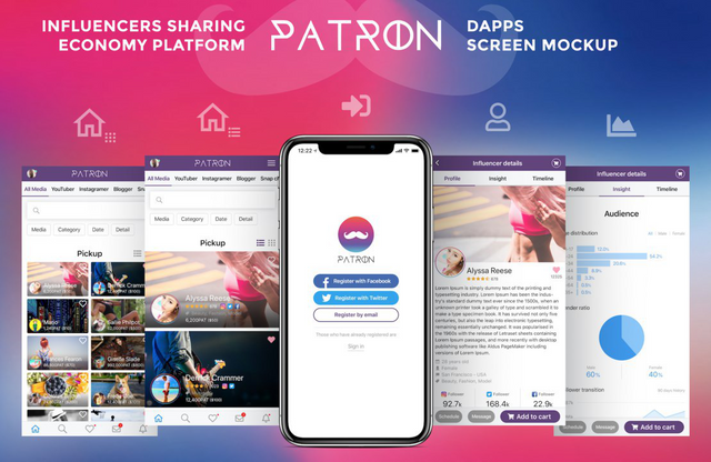 Patron is a project that is poised to revolutionize marketing through Influencers on Social Networking Services. Patron has developed a working Influencer sharing economy based on the perfectly working Airnbnb sharing economy model rather than trying to reinvent the wheel. In Airbnb, a host is able to rent out an apartment to a visiting guest for a fee by creating a listing of their property on Airbnb. In the same way, the Patron platform offers a collection of Influencers across various niches and social platforms who are ready to offer their services to companies or entities willing to promote their products or services. Patron stands out because it integrates mechanisms that eliminate the gambling factor from marketing campaigns through the abilities of ranking influencers based on various parameters as well as providing Influencers whose following is based on a specific demographic that is interested in a specific thing. This way Patron serves as a platform that serves as a one stop shop for effective marketing campaigns and also better empowers Influencers and guarantees their visibility.