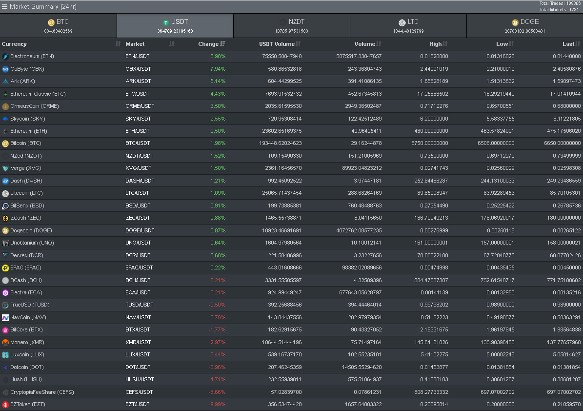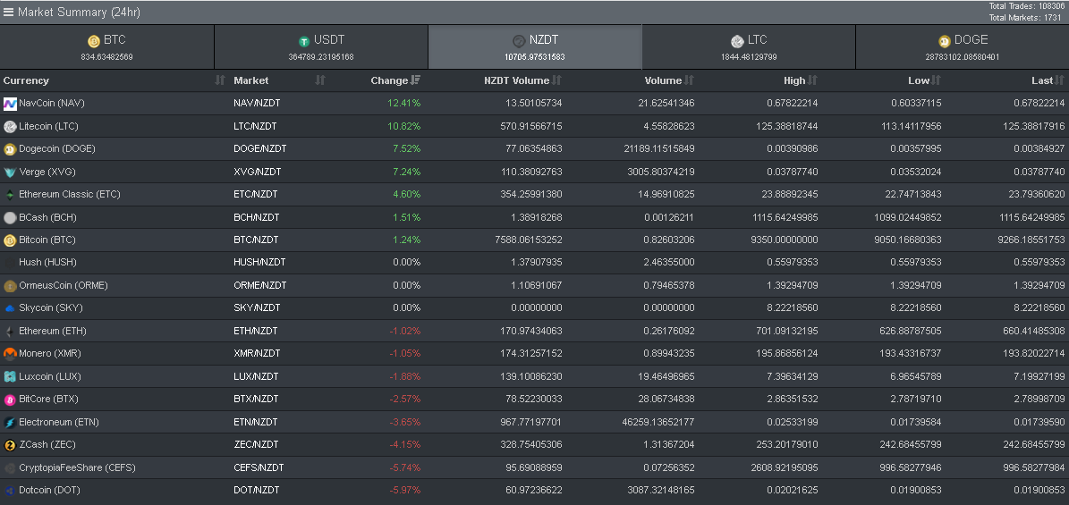 cryptopia volume 5 july 2018 fiatsteemCreated with Sketch.blockchainlives (45)in #crypto • 8 years ago altcoins v fiat sorted by biggest gains @ 9pm Australian time v usdt v nzdt #cryptopia #markets #alt-coin #fiat