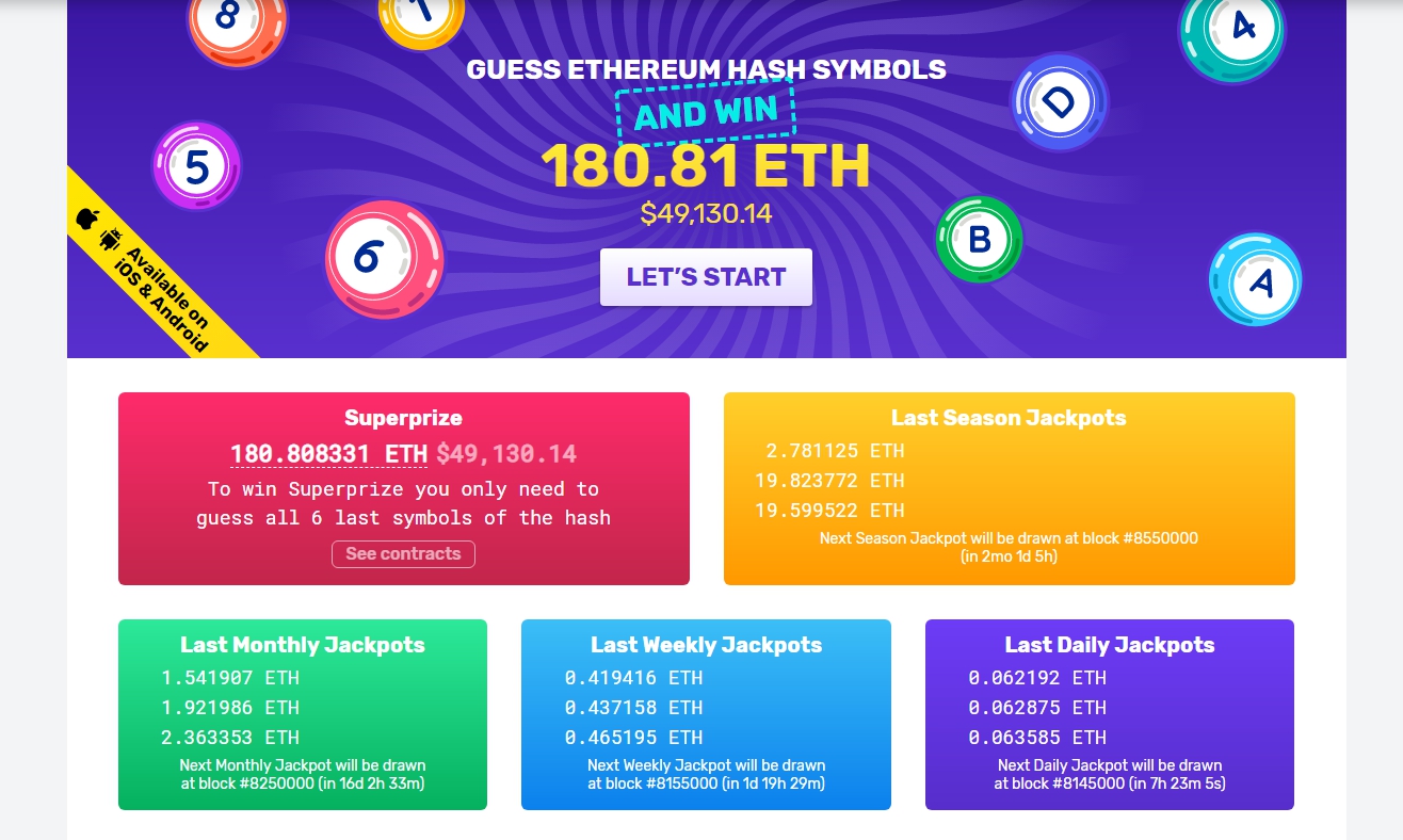 Players need to guess the Etherium block hash using their bet transaction,