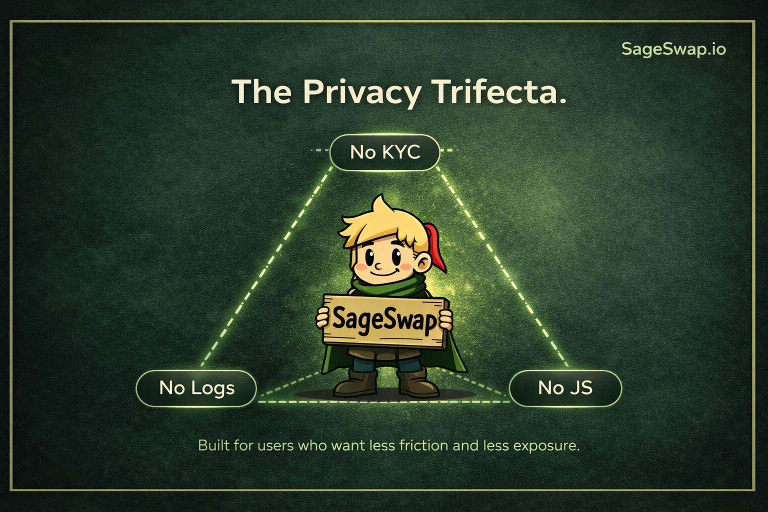 SageSwap is an anonymous crypto swap platform designed around three principles: no KYC, no logs, and no JavaScript. This approach supports privacy-focused transactions while maintaining efficiency.