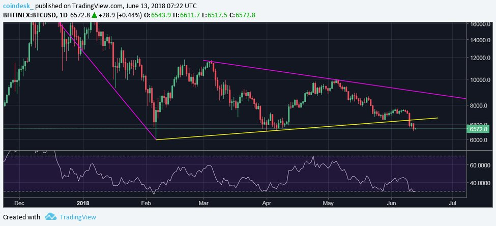 MACRO TREND: Because of the dramatic sell-off and the RSI is oversold, we might see BTC recover and, before a dramatic bear break to below $6k. Expect bounces along the way to a lower low, to cool off the RSI levels.