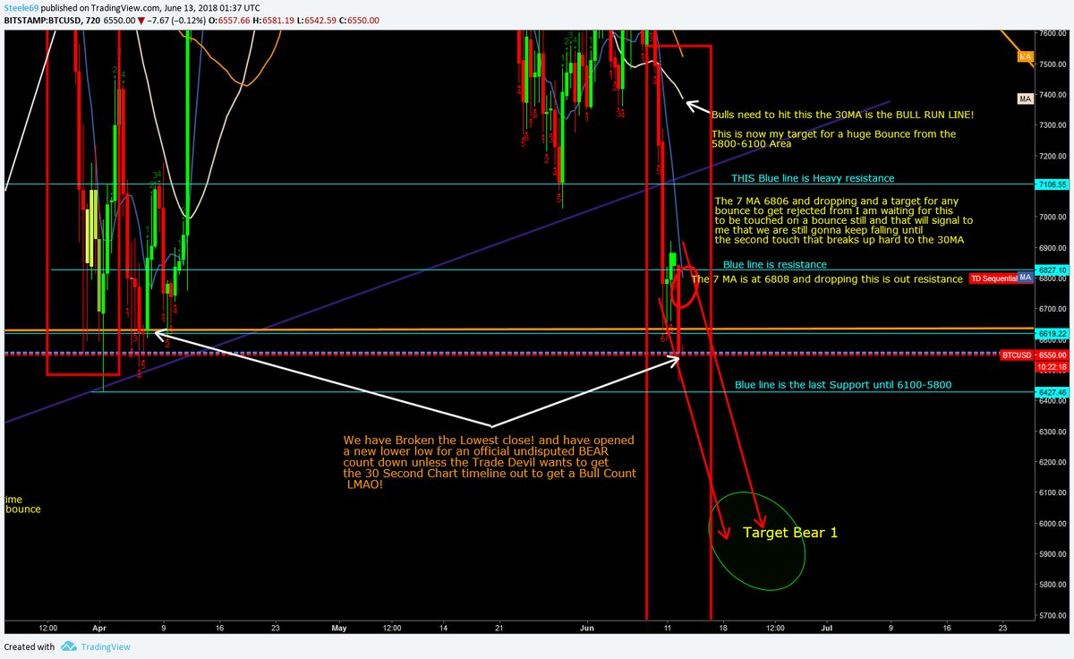 If you are SHORT, Keep an eye on 6450 Support. If #bitcoin holds that, expect a rocket to 6900 Area! Keep you SHORT Stop Loss tight. And be on guards for Longs!