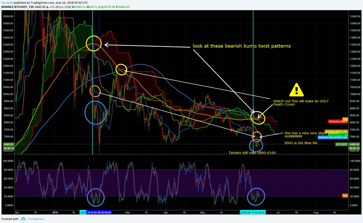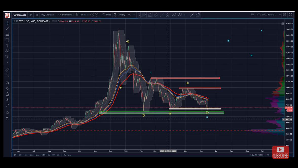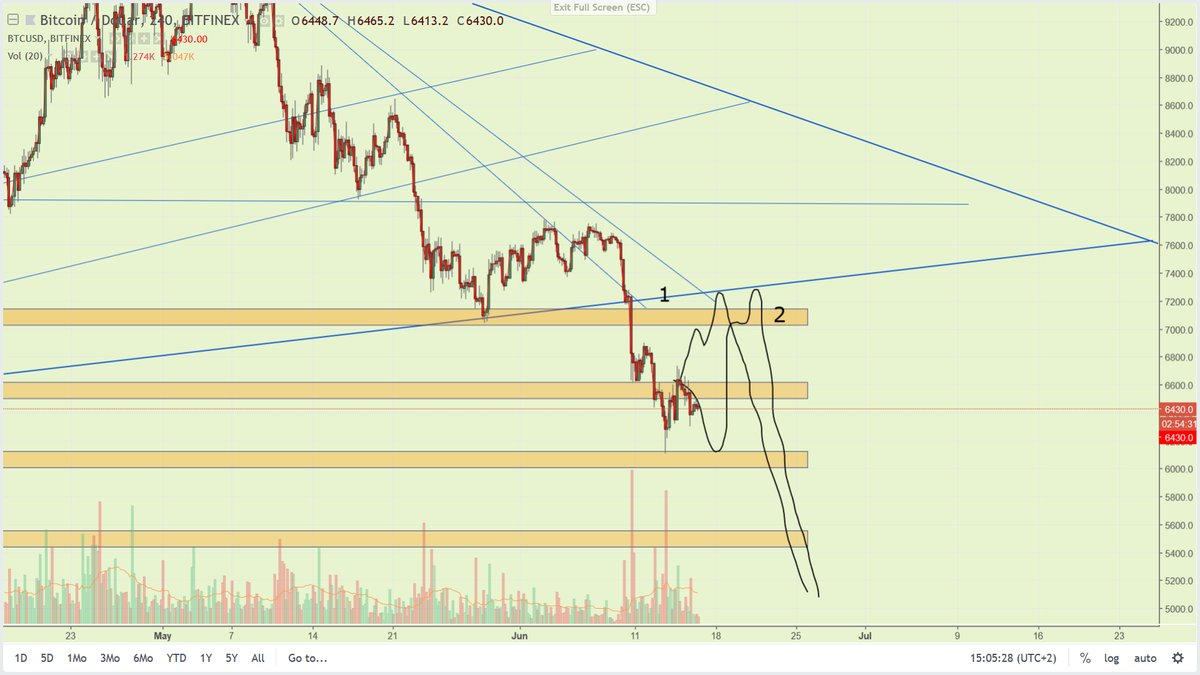For this scenario to play out, we'll have to see prices recover with conviction from these levels. Again, if $6k is broken the bullish count is off the table. The next stop upwards should be around $6900.