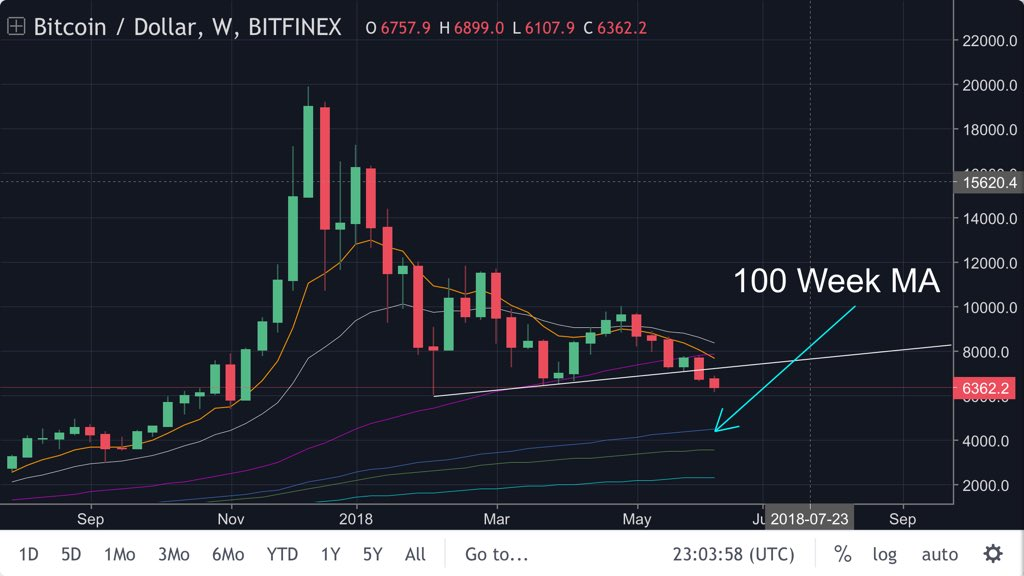 Expect #bitcoin to hold 100 Week MA at 4500 with +/- 10% Maximum. Initial bounce from that area will trigger a Mini Bull Run across ALTs posting 70-200% gains.