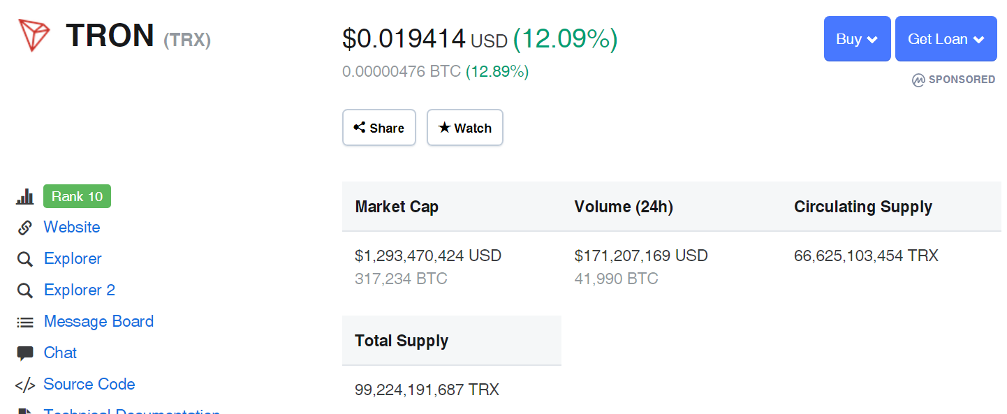 TRON (TRX)=$0.019414 USD