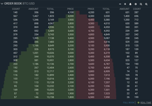 As you can see in gold’s case, catching the exact market bottom can be extremely difficult. They can take a long time, and when they do occur, they are typically quick and violent. There are a few ways you can apply this knowledge to the current cryptocurrency market. We already see some smart traders doing this now by looking at the order book on several large exchanges.
