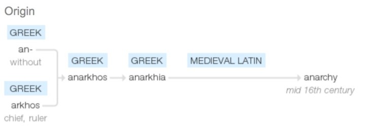 If you break down the origin of the word to its Greek roots - it literally means "without ruler"