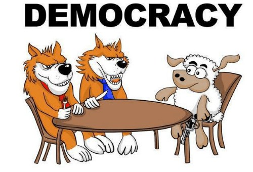 “Democracy is two wolves and a lamb voting on what to have for lunch. Liberty is a well-armed lamb contesting the vote!” - Benjamin Franklin