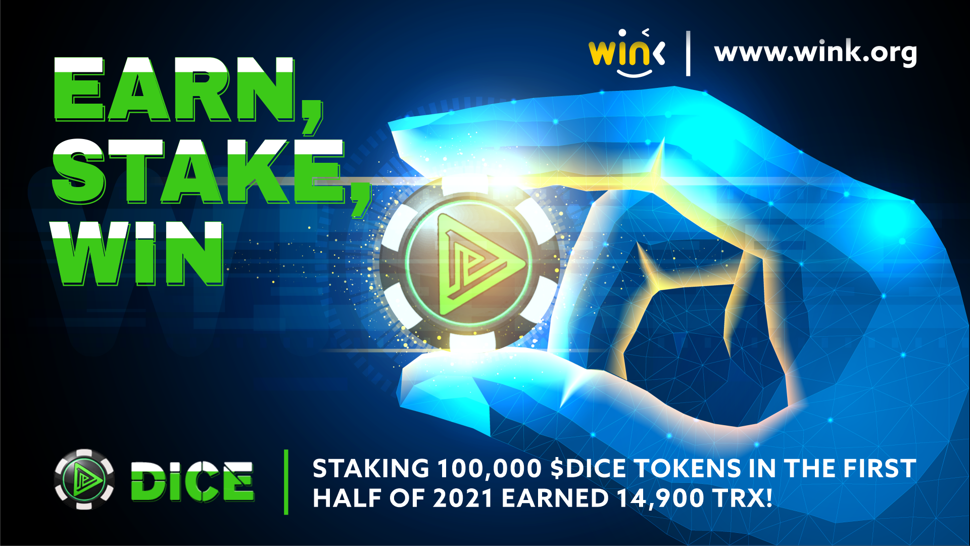 Earn $DICE from playing or buy them and join the stakers who receive 50% of the https://www.wink.org platform's revenue.