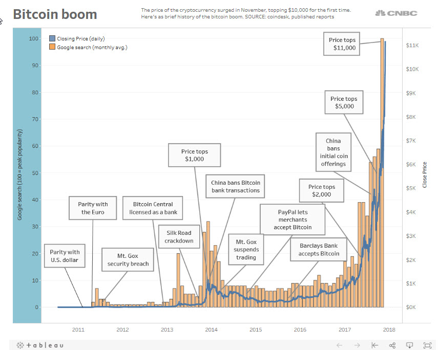 Here's a quick look at rough estimates of Bitcoin's market value over time: