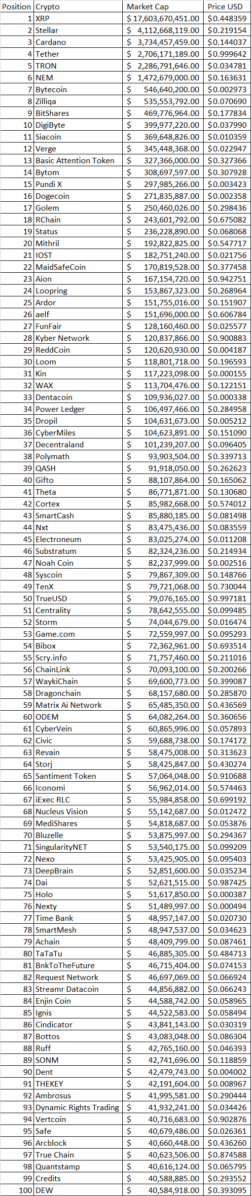 TOP 100 CRYPTOCURRENCIES UNDER $1.00 - WEEK 28 (2018)