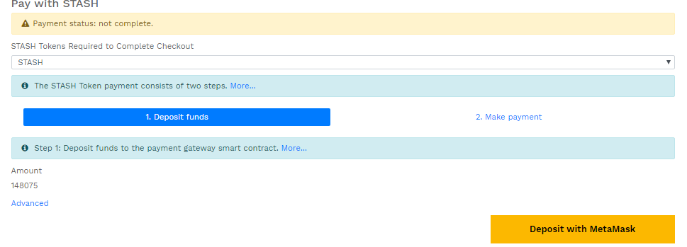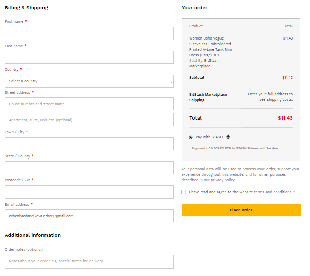 Currently, delivery is possible in 18 countries, including the United States, European countries, Asian countries, Russia and others. On the next page, you can make a deposit using your MetaMask wallet. The only possible payment method at the moment is STASH token.