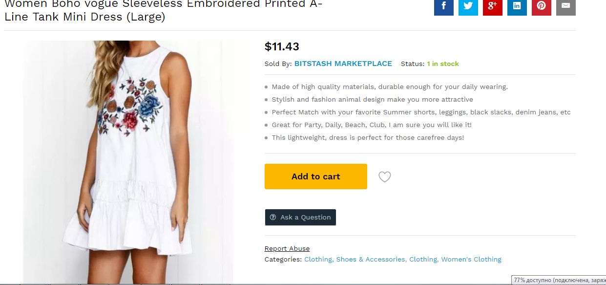 BitStash is a decentralized market platform. The blockchain allowed the creators to reach a new level of security. Each transaction is recorded in a blockchain using a smart contract and requires mandatory verification. In the case when the buyer does not receive the goods, the paid tokens are returned to his wallet.
