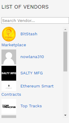 You can also use the search engine on the website. Also below you can see the list of sellers who offer their products at the BitStash Marketplace:
