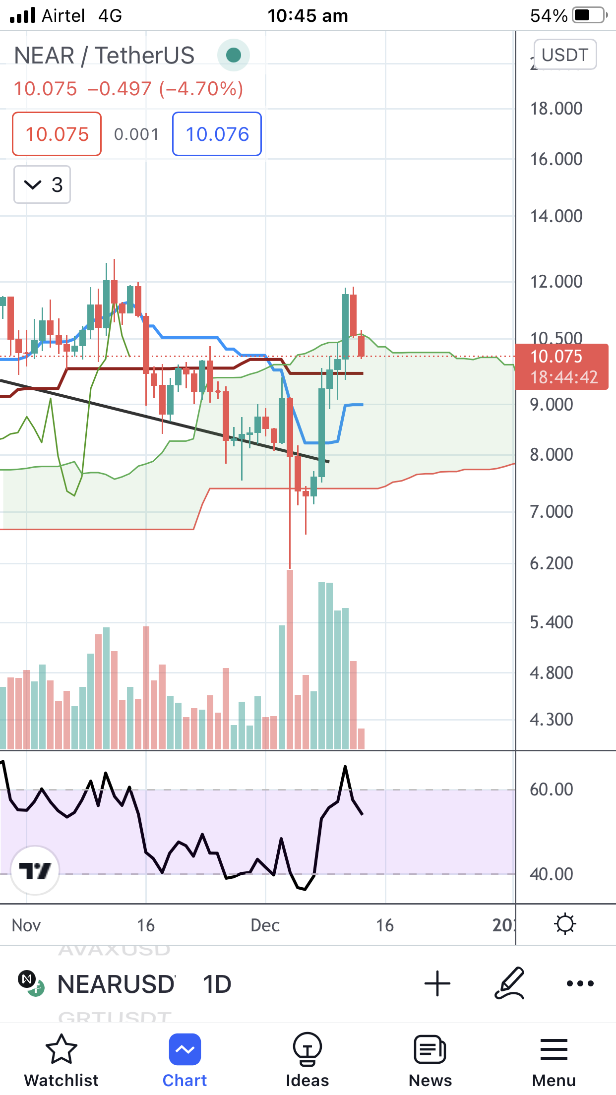Coin analysiscryptolovr (47)in #crypto • 4 years ago According to this chart near/usdt is retesting previous support and I hope so it will recover from this support line and next targets are 15 to 20$ within weeks #analysis
