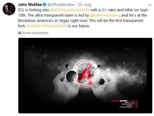 Des weiteren ist John McAfee (Crypto-Influencer) sehr bemüht den Hardfork bzw. den ANON-Coin zu pushen.