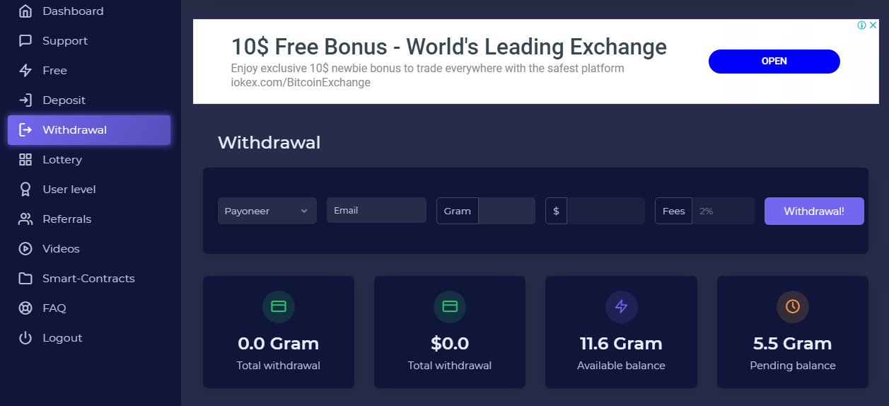 when you win necesary tokens you can withdram to bitforex or payoneer: