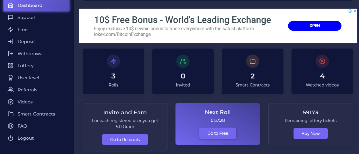 Click the button "smart contracts" to claim your tokens, and click in the button "free" to win tokens.