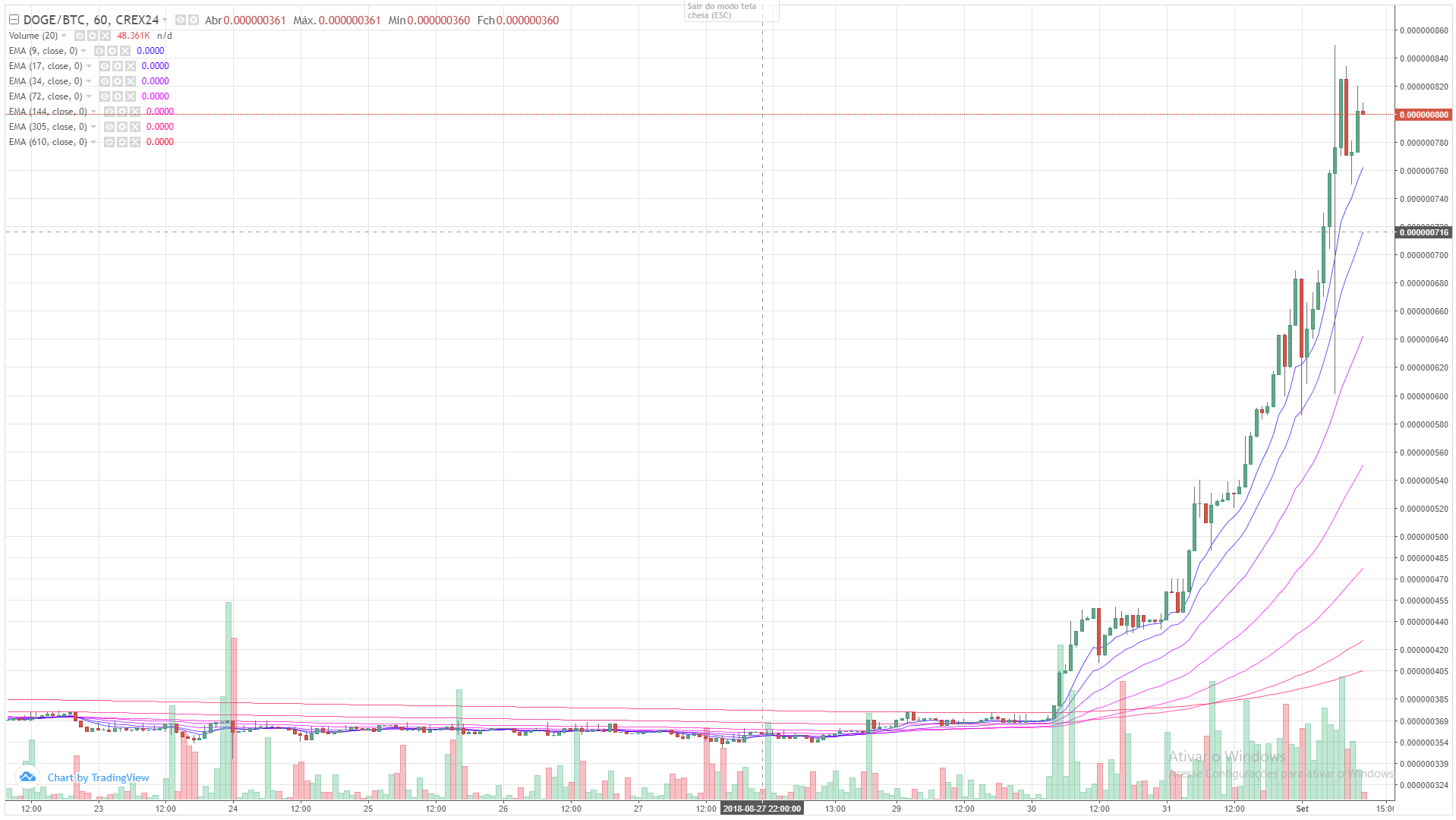 There is a high of some coins and DOGECOIN tops the list. Together are EOS, XMR. LTC starting up movement.