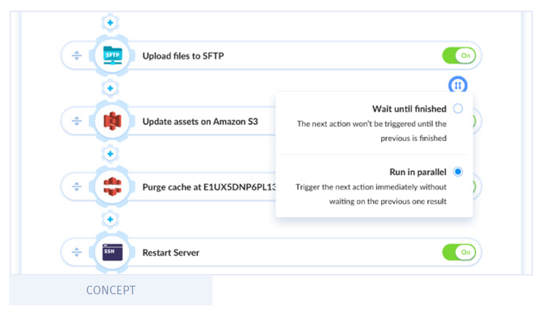 A 3-layer parrallelism system is created , and this divides pipelines and their actions into separate jobs, known as tasks that can be run simultaneously, so as to create a strong demand for Buddy’s Compute unit, encourage usage of additional resources from private networks, and help the users deliver faster.