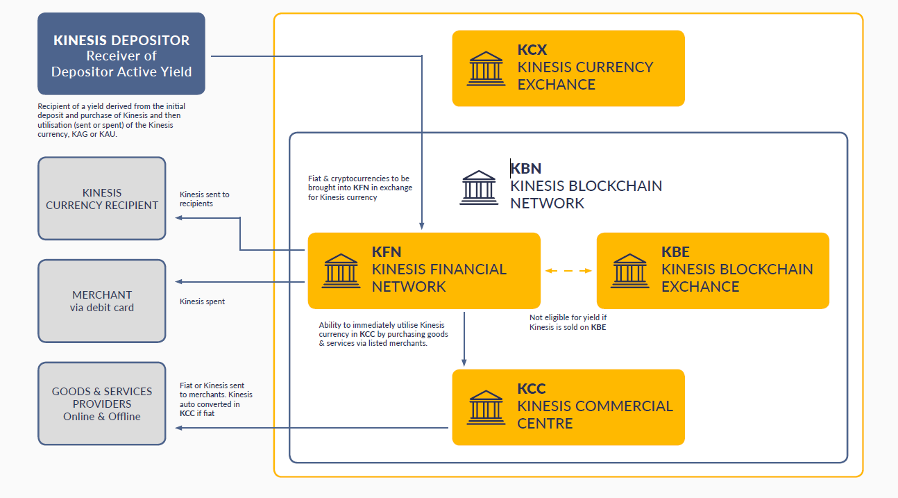 • Kinesis Financial Network (KFN): This allows for the saving, payment, remittance of Kinesis currencies.