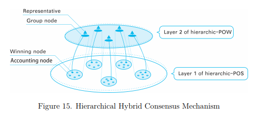 The Hierarchical Hybrid Consensus Mechanism (HHCM) used by FUSION is for stratifying the computational work of generating blocks and adopting a suitable consensus mechanism in different layers. HHCM introduced the concept of grouping to achieve private keys’ generation, management and parallel computing. HHCM combines the advantages of PoW and PoS to balance safety, efficiency, scale and other aspects.