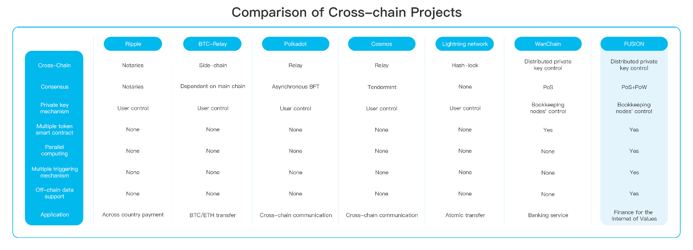 Great potential is hidden in the Interoperability between blockchains. FUSION blockchain is aiming to serve as the infrastructure for the Internet of Value with an innovative approach. It will allow multiple token smart contracts, parallel computing, off chain data support, and multiple triggering mechanisms for the smart contract (Time, data and more).