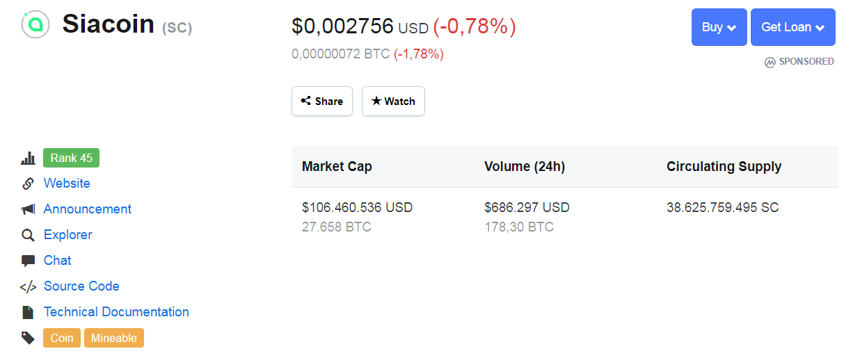Siacoin (SC)eyeofbrain (58)in #crypto • 7 years ago Siacoin (SC)=$0,002756 USD (-0,78%) #sc #kryptonia