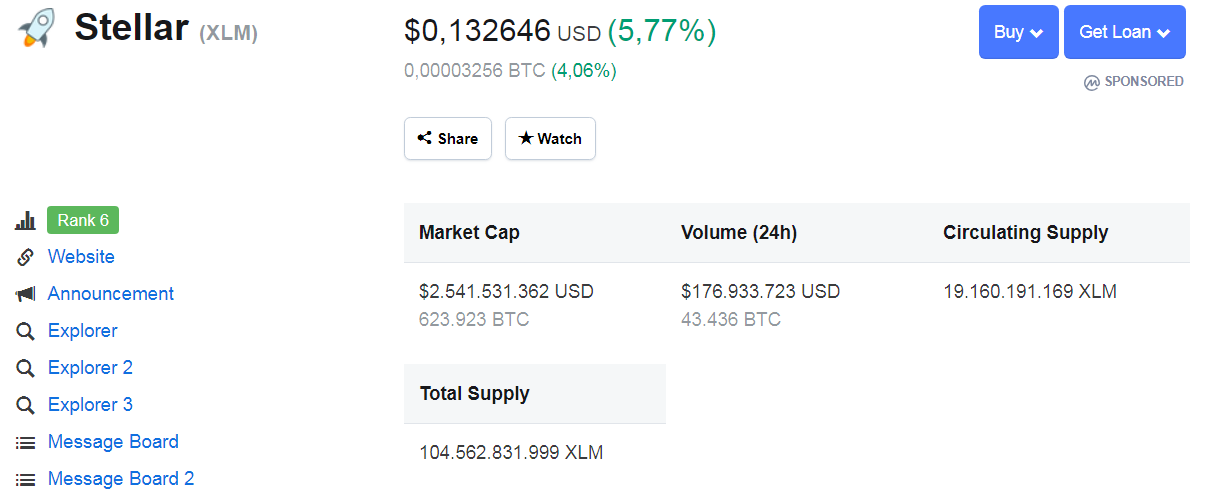 Stellar (XLM)eyeofbrain (58)in #crypto • 7 years ago Stellar (XLM)=$0,132646 USD (5,77%) Stellar (XLM)=0,00003256 BTC (4,06%) #xlm #kryptonia