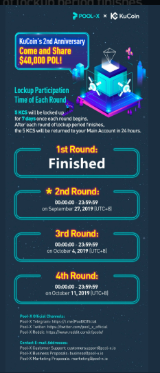 KuCoin is down for the last round of Pool-X tomorrow and they adjusted the time for it. See the updated information about IWANTPOL here; https://twitter.com/pool_x_official/status/1181772926346919936