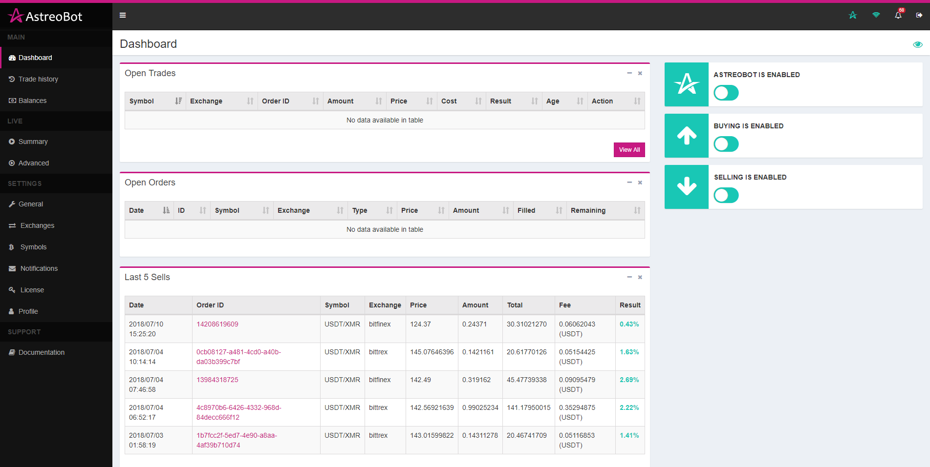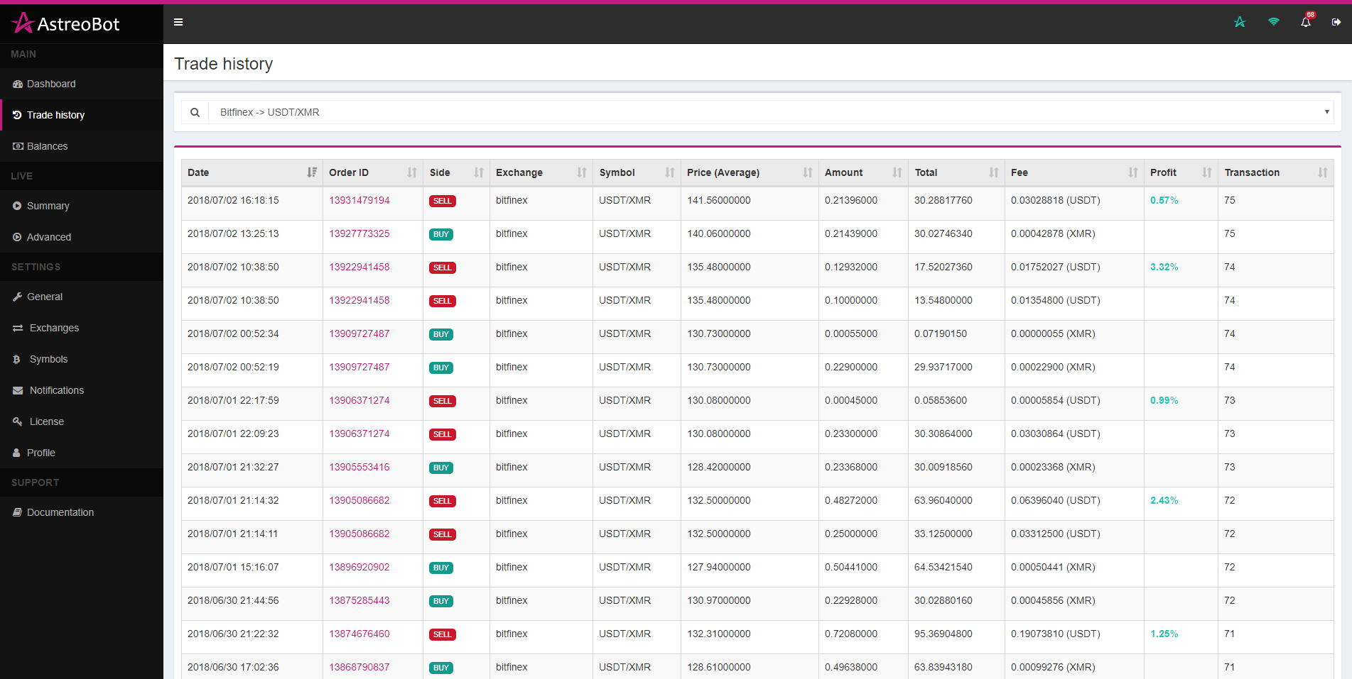 AstreoBot is so convenient because it has an intuitive and user-friendly interface with the inexperienced user. With it, you can easily set up the exchange houses with which you are going to operate. Its users can also follow minute by minute each operation that is performing thanks to its live graphics. Likewise, you can choose the strategy and the pairs of cryptocurrencies with which you will trade. Operations and profits can be filtered by day, cryptoactive and exchange house.
