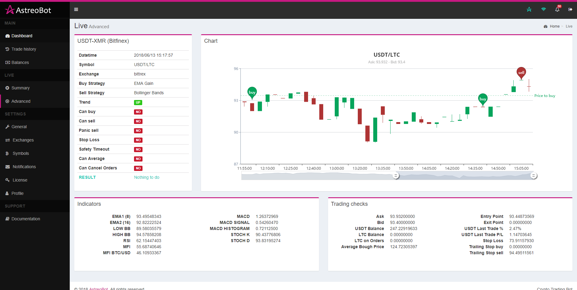 The operations of AstreoBot are completely automatic. In fact, one of the concerns of the team is that the user can perform other activities besides trading. Thus, the user can configure the notifications in Telegram or Pushover. In this way, you can let the bot do the operations and monitor your activity from the cell phone.
