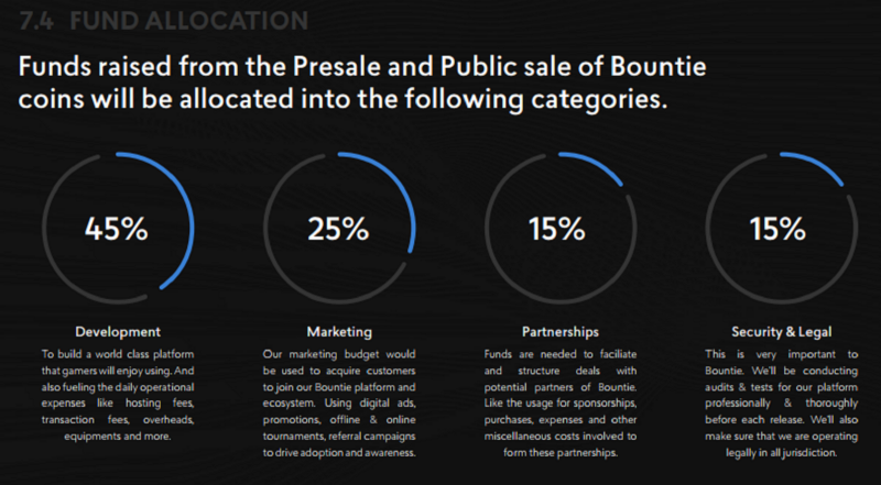 The revenues of Bountie ecosystem revolves around advertising for gamers; sponsorships that will host the tournaments; media streaming and content creation that provides reviews and guides; tournament API that will enable game publishers to link their game on Bountie platform and tournament fees where Bountie will offer a small transaction fee per tournament that are organized on their platform.