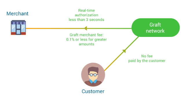 GRAFT does this by deploying blockchain technology onto point of sales technology to facilitate the cryptocurrency conversion. It eliminate confirmation time factor by introducing real time authorization such that transactions can be swift and secure. The GRAFT network also allows for a buyer to be able to locate stores which accepts cryptocurrencies using the GRAFT blockchain thus expanding the customer base of the merchants. It also allow some limited amount of authorized offline transactions (if there is issue with network) which can be confirmed later when there is maximum connectivity.