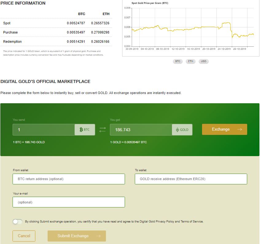 Liquidity has always been an issue when dealing with physical gold, this doesn’t imply that there is no active market for physical gold but rather the process of selling physical gold is slow, unprofitable and bedeviled by a host of local legislations. Unlike other financial markets of same valuation, selling off physical gold is most arduous but with the Digital Gold platform and use of the GOLD token, one can seamlessly sell-off even large amount of GOLD at any time and from anywhere in the world in a market open 24/7 without having to battle with restrictions. Asides from being available on notable Crypto exchanges such as livecoin, catex and coinsbit, the GOLD token can also be traded on Digital Gold Marketplace. The digital gold marketplace utilizes the Digital Gold company history as a liquidity supplier to provide the much-needed liquidity to facilitate the seamless purchase or redeeming of GOLD tokens directly on the website.