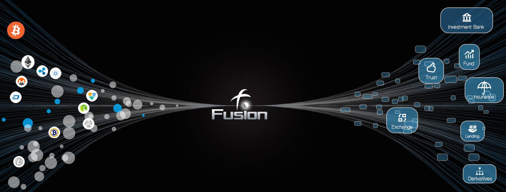 Fusion is a platform that aims to establish a public chain that connects all kinds of values, be they tokens, intelligent contracts, etc. It will provide financial functions, unite centralized and decentralized organizations to generate IoV.