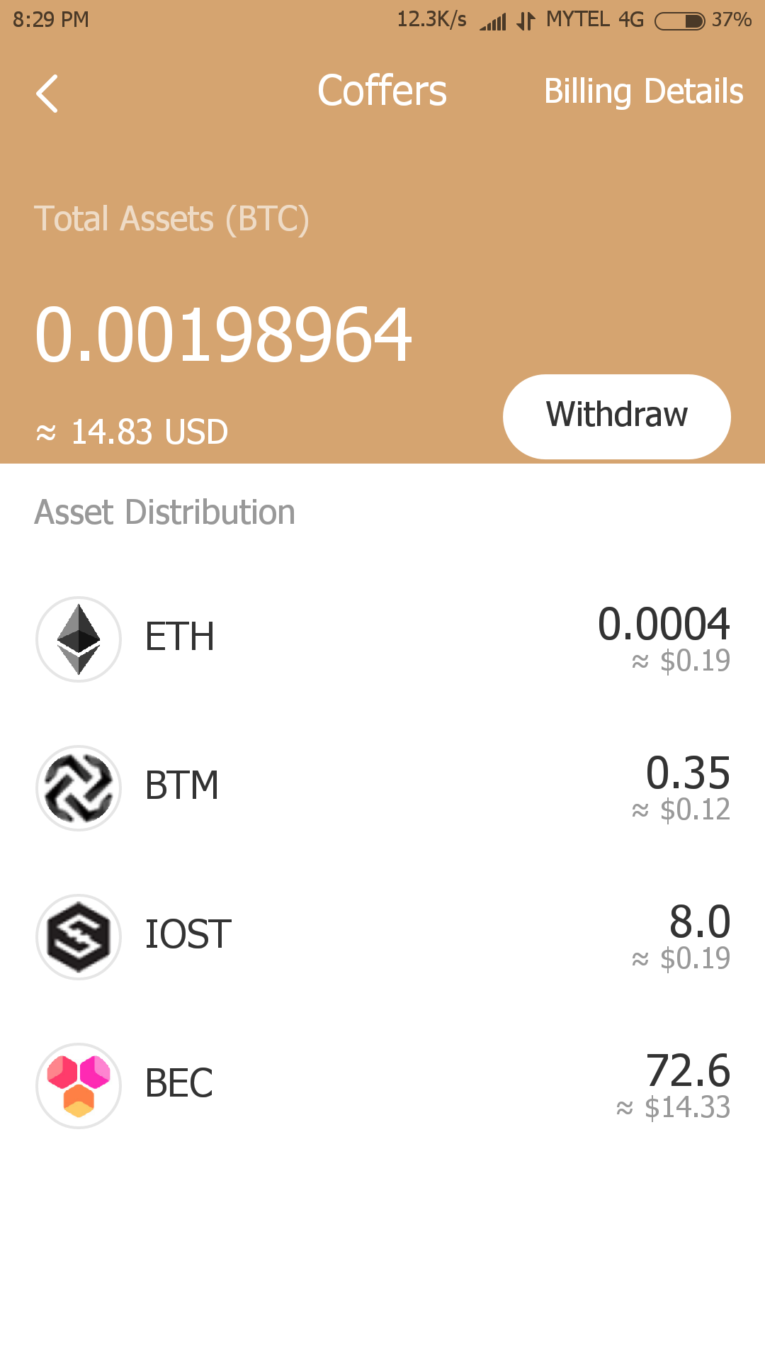 BEC Walletjhonmichael (40)in #crypto • 8 years ago BEC coin ဖရီးေပးတဲ့ bec wallet တဲ့။ အမ်ိးေတြ လုပ္ထားျကျပီးျပီလား။ ၆နာရီတစ္ျကိမ္ free ယူလို့ရတယ္တဲ့။ တစ္ျကိမ္ယူရင္ 0.8 BEC ရပါတယ္တဲ့။ COIN လည္း ထုတ္လို့ရပါျပီတဲ့။ က်ြန္ေတာ္ကေတာ့ 14 US$ ေလာက္ရထားပါျပီ။ ေဘာ္ဒါတို့လည္း မလုပ္ရေသးရင္ လုပ္လိုက္ျကဦး။ #android #wallet